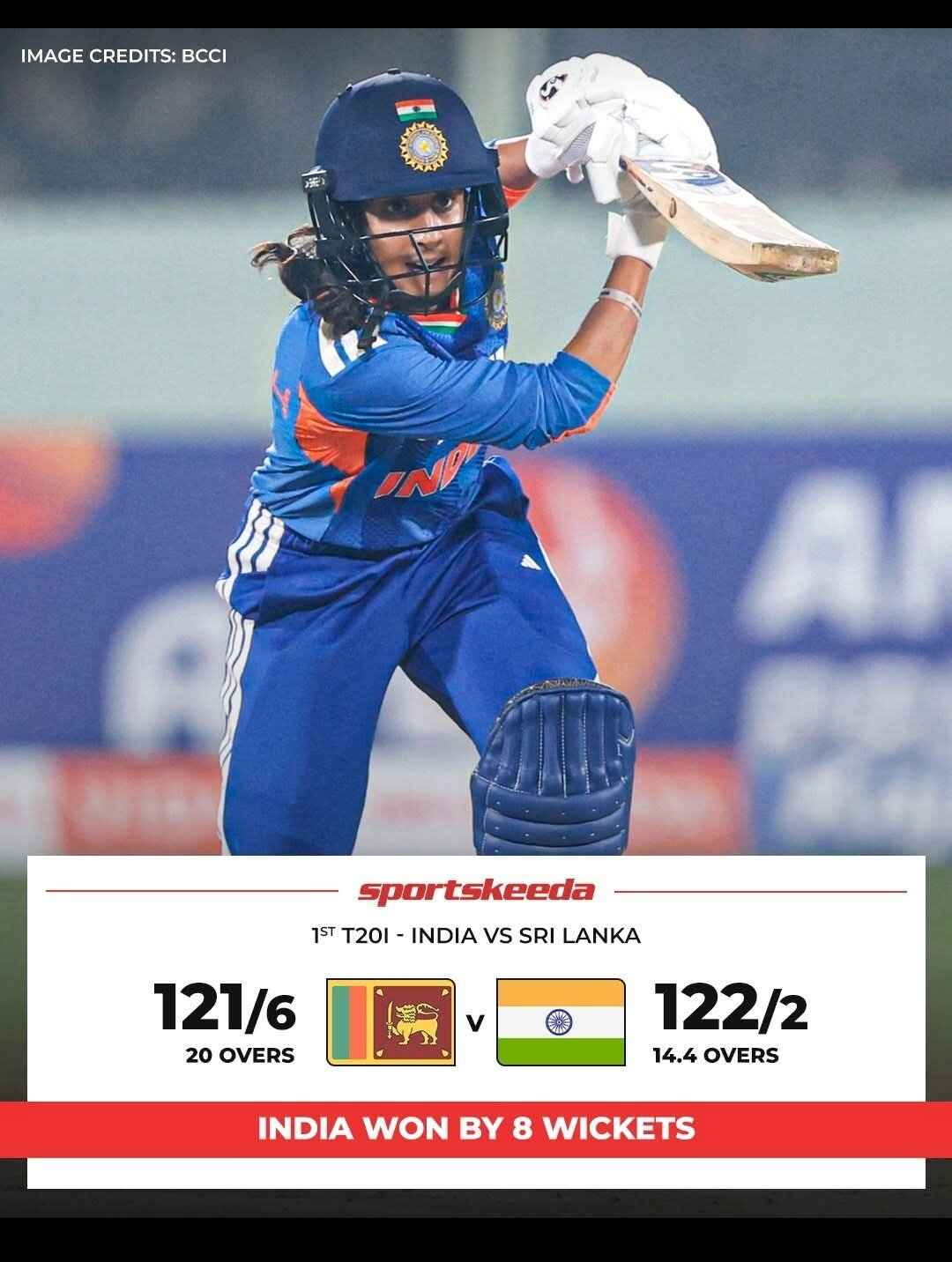 India defeated Sri Lanka by 8 wickets in the first T20I to take a 1โ0 lead in the five-match series. ![]()