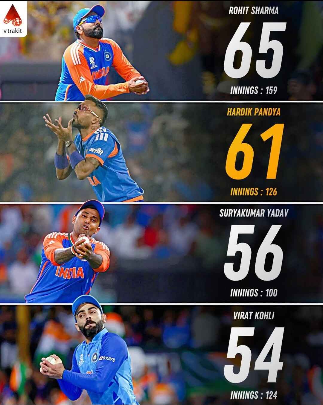 Hardik Pandya climbs to second place in Indiaβs all-time T20I catches list! ![]()
