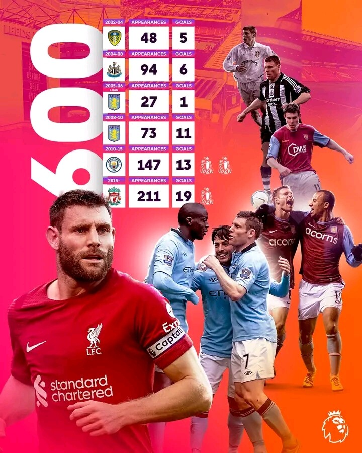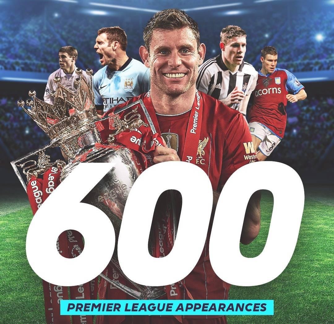 James Milner has become only the 4th player to make 600 Premier League appearances: