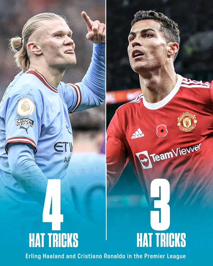 Erling Haaland already has more career Premier League hat tricks than Cristiano Ronaldo…