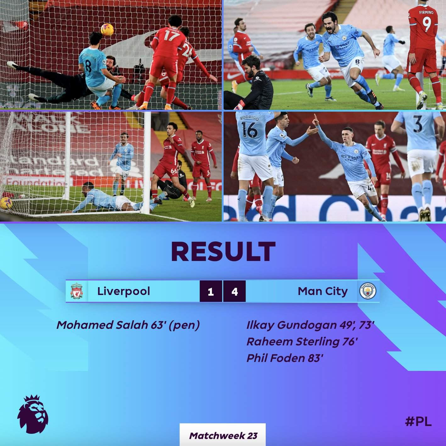 Liverpool 1-4 Man City FT: