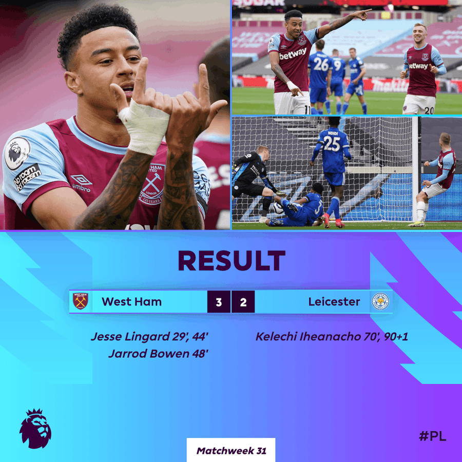 West Ham survive a late Leicester fight back to go back in to the top four.