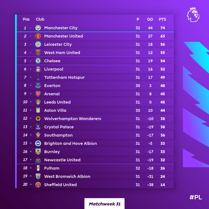 Matchweek 31 ![]()