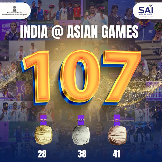 As the 19th Asian Games in Hangzhou came to an end on Sunday, India created history by winning a total of : 107 medals with 28 gold medals breaking the record 15 Gold and 70 total medals won in 2018 Jakarta Asian Games!